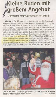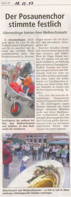 Über einige unserer Auftritte auf Weihnachtsmärkten (Altenmedingen, Lüneburg (2x), Jelmstorf, Bad Bevensen (2x)) wurde auch in der Zeitung berichtet.